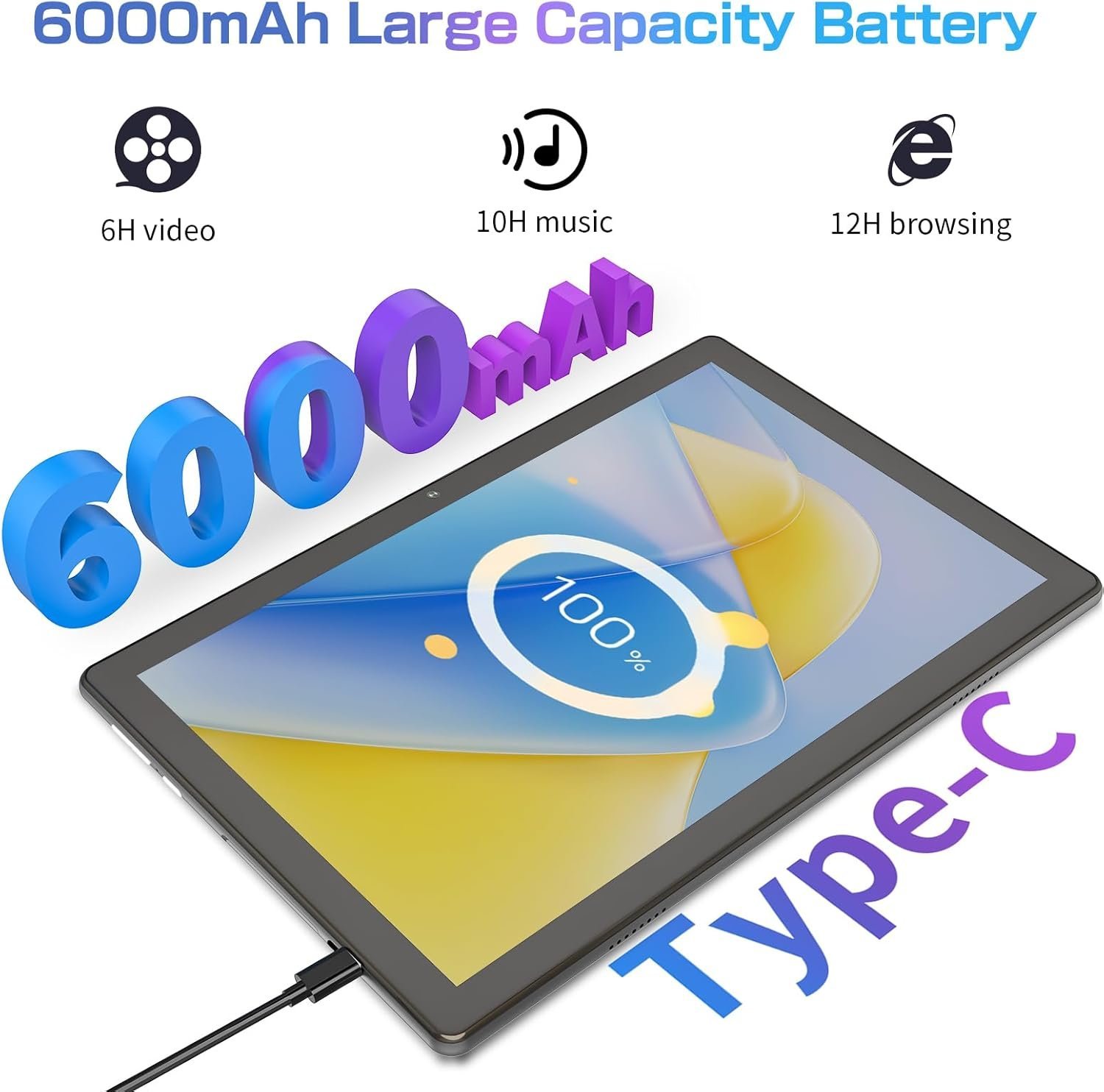 [Battery] – 6000mAh for up to 8 hours of mixed use.
