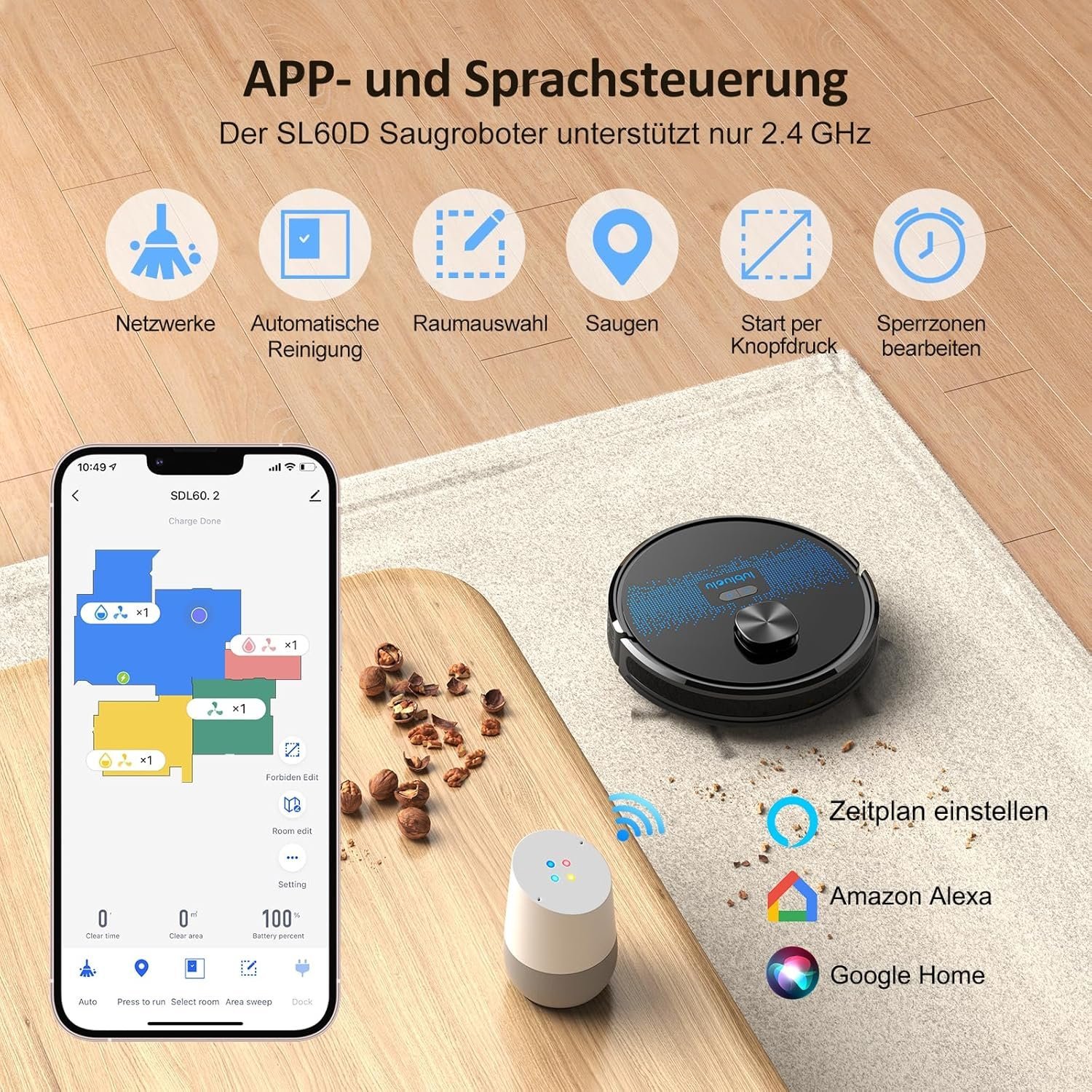 Einfache Bedienung per App! Ich kann ihn von der Arbeit aus starten, so kommt ich zu einem sauberen Zuhause.?